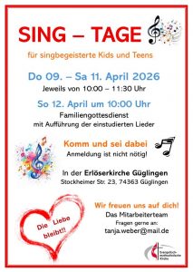 Zum Familiengottesdienst mit Aufführung der einstudierten Lieder am 12.04.26 um 10:00 Uhr ist jeder herzlich eingeladen.